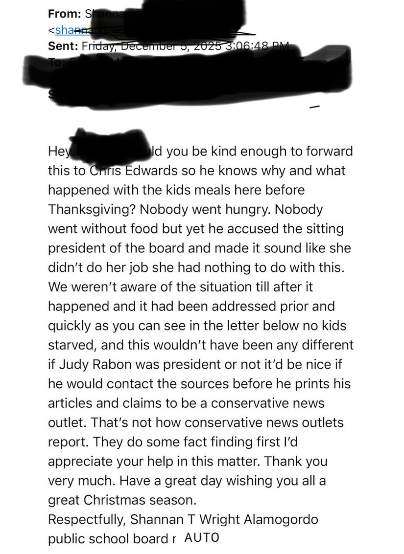 The question now is not whether students ate lunch that day. Most did. The question is whether Alamogordo’s school board leadership is upholding the standards of transparency, accountability, and ethical conduct expected of public servants. And whether the press, operating within its rights as a 501(c)(4), will continue to shine a light on those moments when power and responsibility fall out of balance- it will!